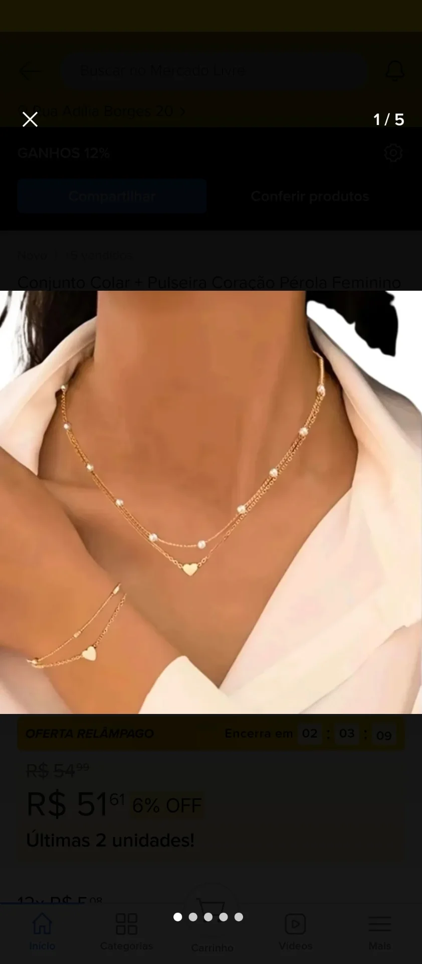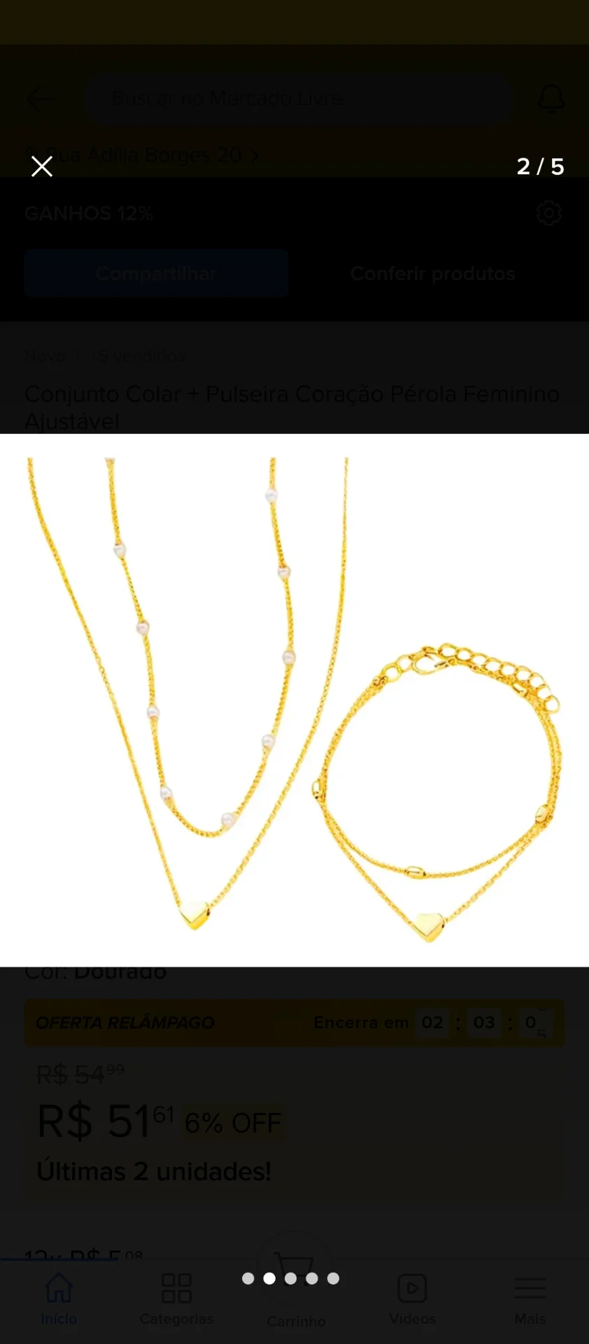 Conjunto colar + pulseira coração pérola Fermino ajustável