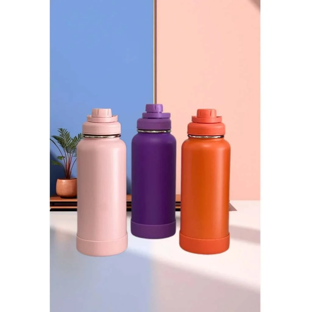 Squeeze térmico de aço inoxidável. Mantém bebidas geladas por 24h ou quentes por 12h. Design moderno e prático.