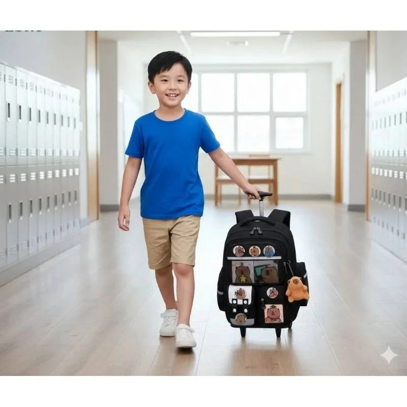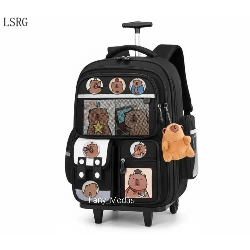 Mochila Escolar Capivara com Rodinha Reforçada + Chaveiro Exclusivo Volta às Aulas