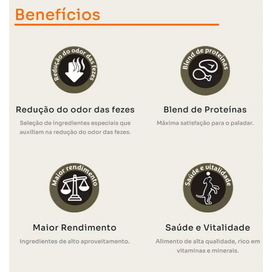 Ração super premium para cães adultos. Rica em proteínas, vitaminas e minerais. Pelagem brilhante e saúde garantida!