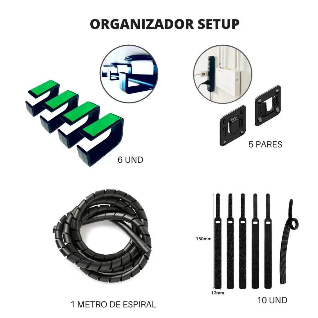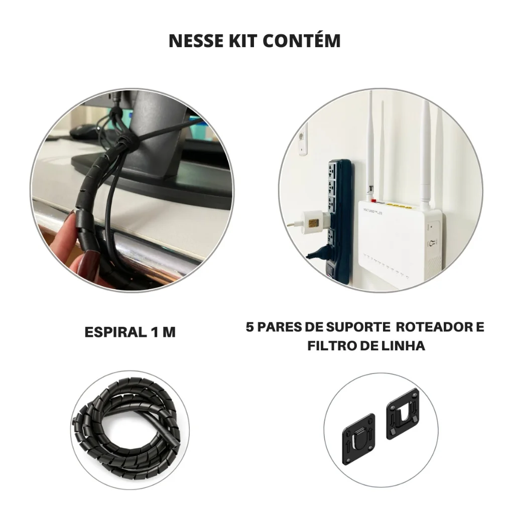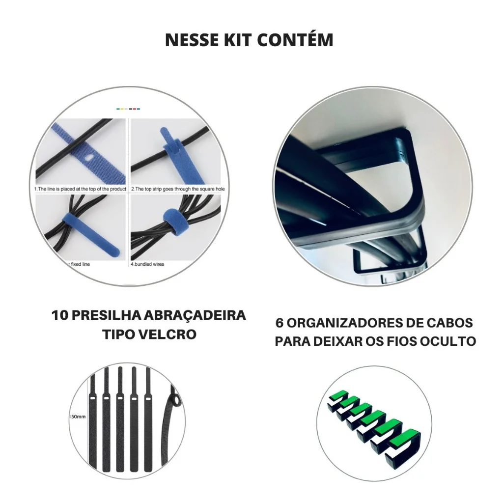 KIT ORGANIZADOR PARA SETUP GAMERNESSE COMBO VC VAI ENCONTRAR OS PRINCIPAIS ITENS PARA DEIXAR O SEU SETUP ORGANIZADOITENS6 ORGANIZADOR OCULTO BAIXO MESA5 PARES DE SUPORTE PARA FILTRO DE LINHA E ROTEADOR10 ABRAÇADEIRA TIPO VELCRO 1,5 METRO DE ESPIRAL