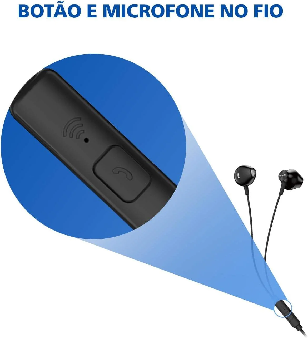 PHILIPS, Fone de Ouvido com Microfone, TAUE101BK/00, Com fio de 1,2 metros, intra-auricular, Preto