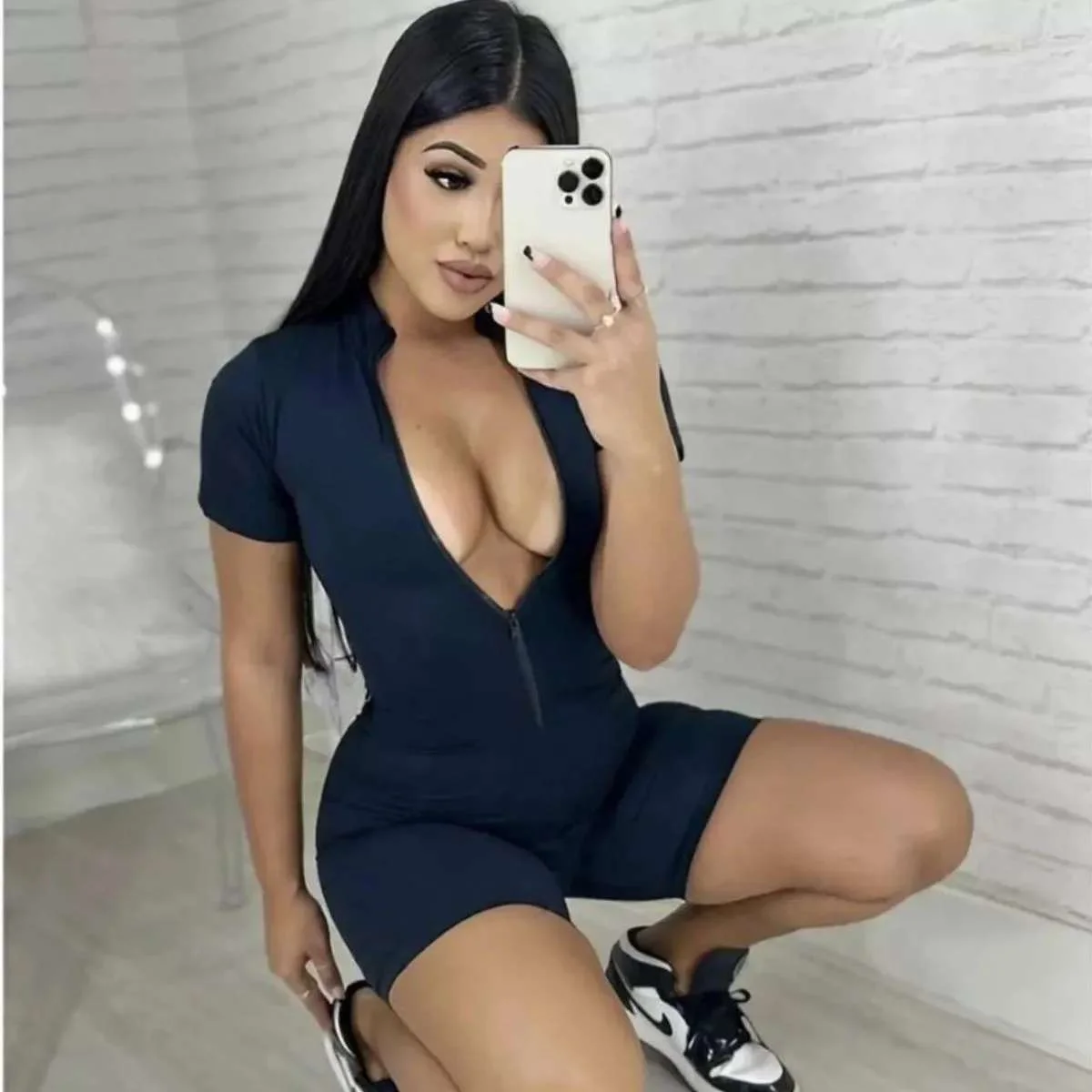 Macaquinho Feminino Moda Gringa Curto Ziper Academia Fitness