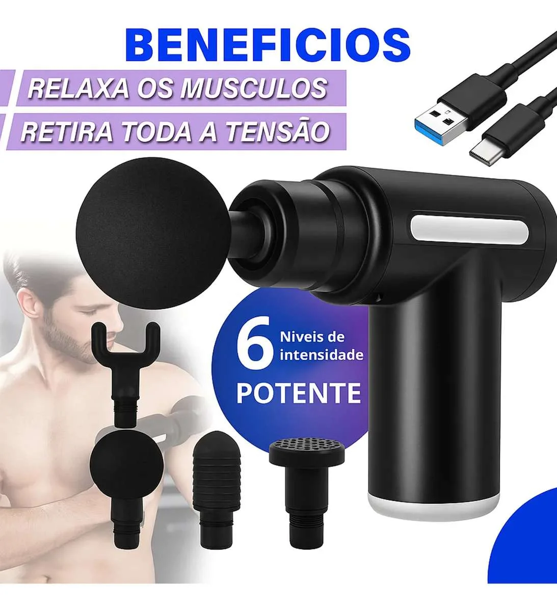 Voltagem: 127/220V.É sem fio.Funciona por meio de um sistema de vibração.Possui 6 velocidades.Desligamento automático.Acompanha bateria.Tipo de fonte de alimentação: bateria.Massagem que alivia músculos tensos e reduz dores e rigidez.Proteção contra superaquecimento.Acompanha 4 cabeçotes para diferentes grupos musculares e carregamento bivolt ou USB.Melhora circulação, reduz dores e acelera recuperação pós-treino com uso diário seguro.Compacta, potente e silenciosa com motor <30dB, ideal para uso pessoal ou profissional.Pistola massageadora com 6 velocidades e até 3200 rpm para alívio muscular profundo.