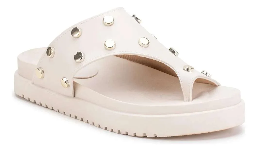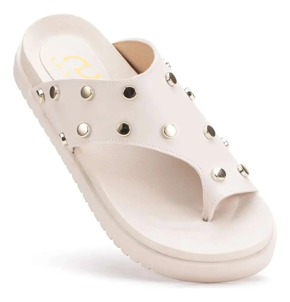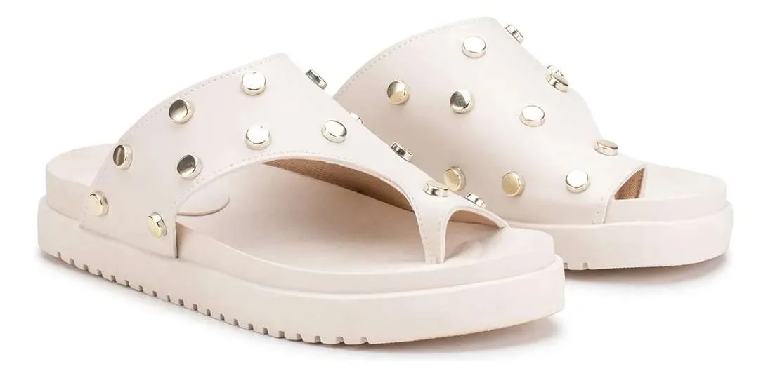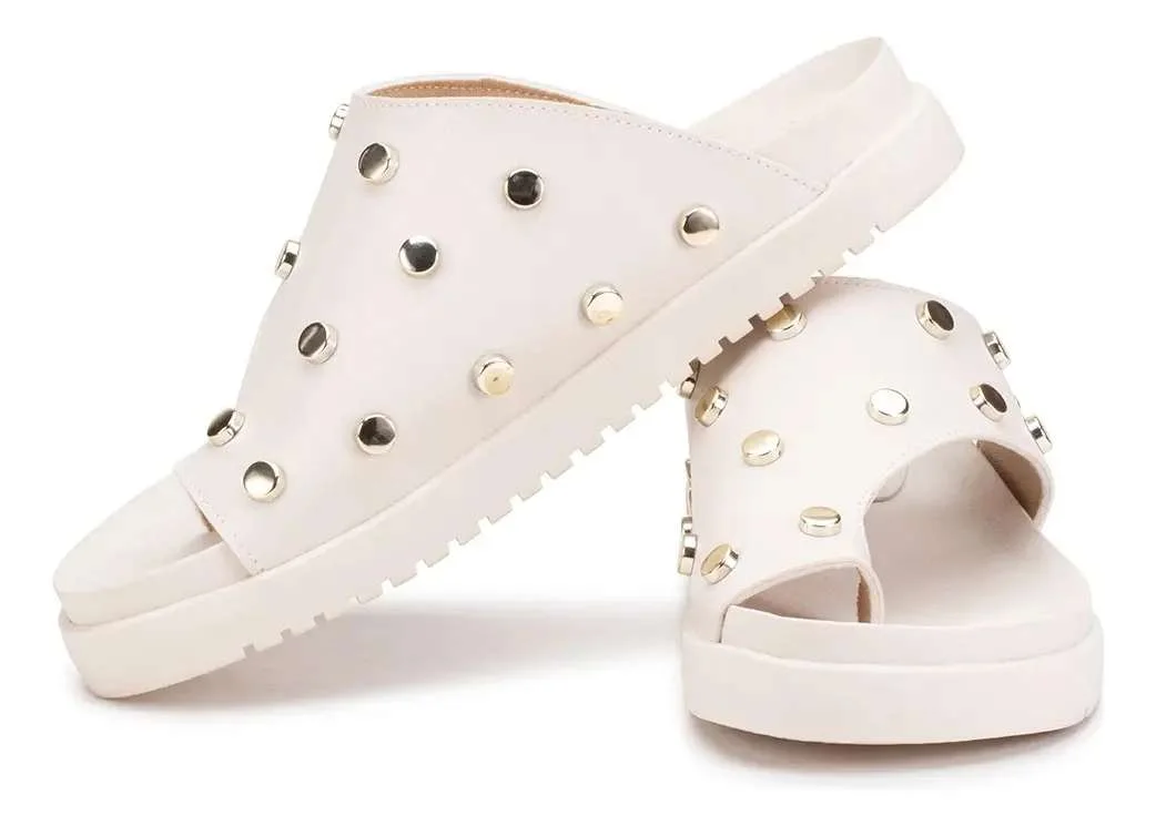 Sandália Plataforma FemininaA sandália plataforma feminina é a escolha perfeita para quem busca unir modernidade, conforto e versatilidade em um único modelo. Com um design minimalista e elegante, ela adiciona um toque de personalidade a qualquer look, sendo ideal tanto para produções casuais quanto mais sofisticadas.Confeccionada em material sintético de alta qualidade, a peça conta com acabamento em spikes arredondados banhados na cor ouro light, garantindo um visual marcante e cheio de estilo. Além disso, oferece fácil calce e limpeza, sendo perfeita para o dia a dia.Detalhes do ProdutoMaterial sintético de alta qualidadeSpikes banhados na cor ouro lightSola emborrachada antiderrapanteAltura do solado: 3 cmFácil calceFácil limpezaForro interno para maior conforto