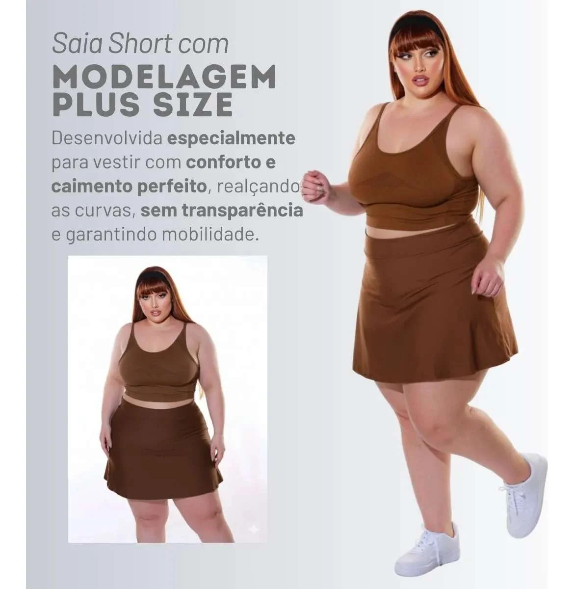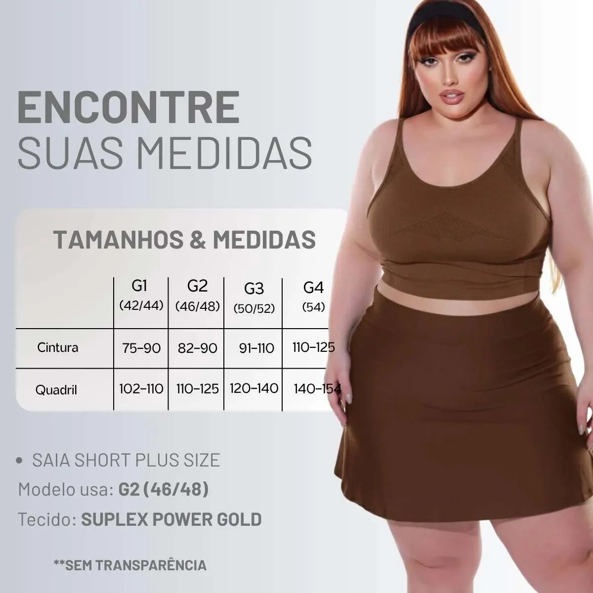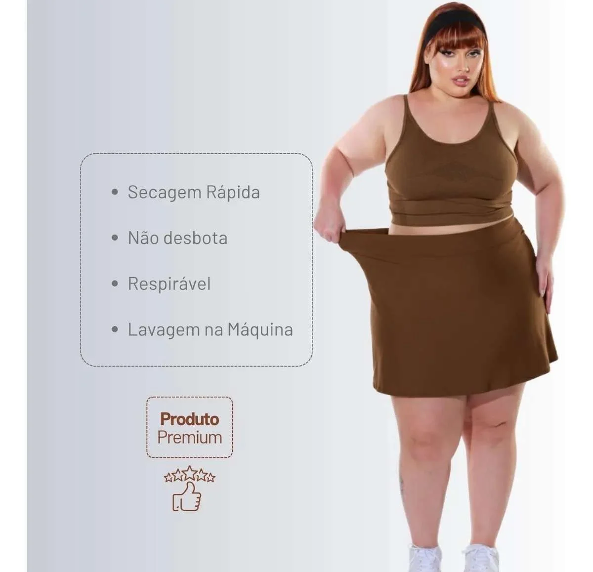 Short Saia Plus Size Academia Corrida Com Bermuda Embutida
