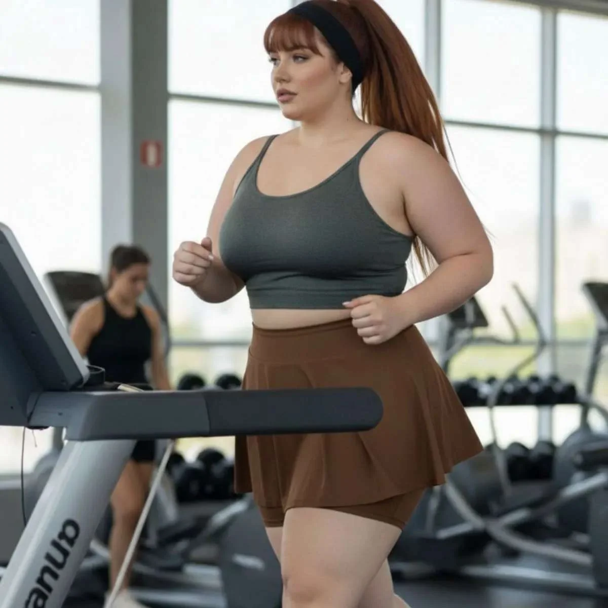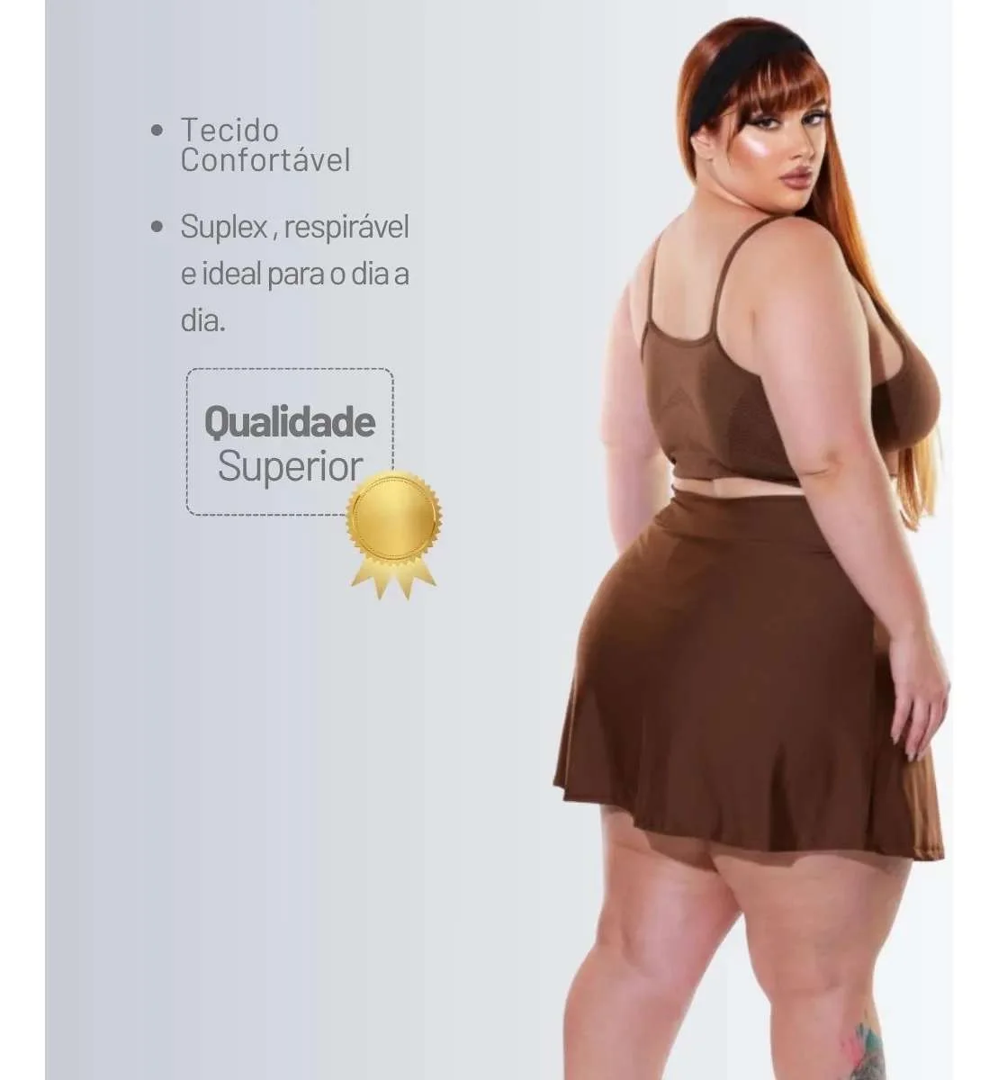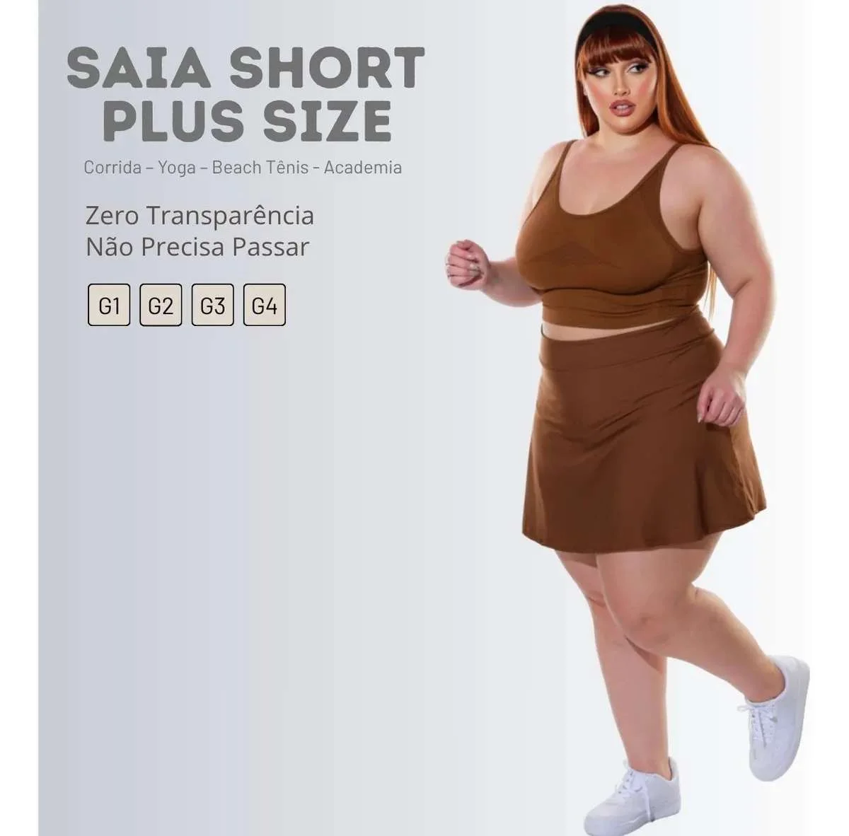 Short Saia Plus Size Academia Corrida Com Bermuda Embutida