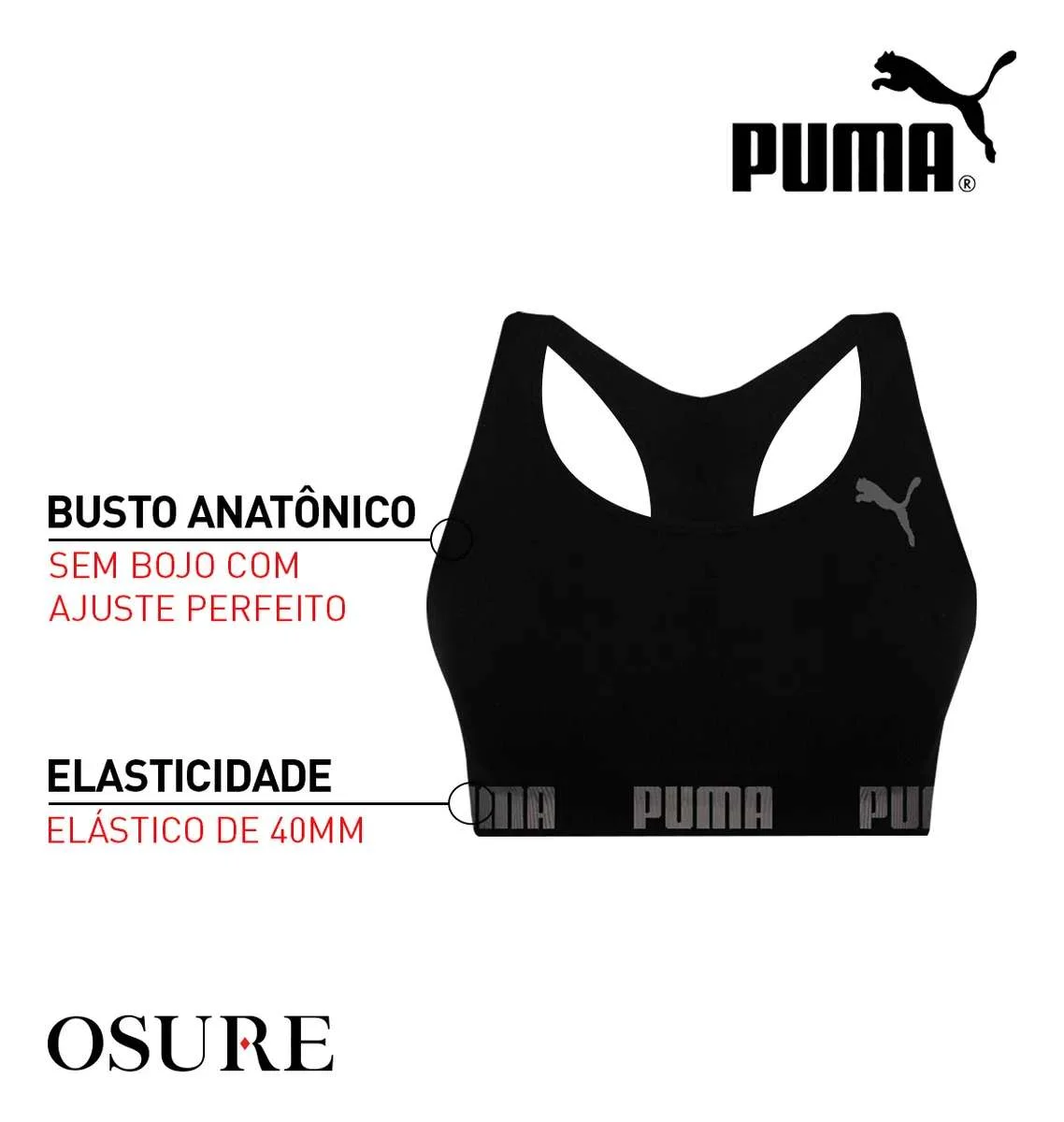 ITENS INCLUSOS:- 1 Top Puma Modelo Nadador - Ref: 27070Produto 100% original, com garantia e nota fiscal.DESCRIÇÃO DO PRODUTO:O Top Puma é sem costura, feito de microfibra leve e confortável. Com design nadador, oferece ótimo ajuste e conforto. O busto anatômico acomoda os seios sem amassar, e a base larga proporciona sustentação. Feito com fios especiais, é macio, durável e de modelagem perfeita.CARACTERÍSTICAS:- Busto anatômico.- Conforto e sustentação.- Conforto térmico.- Decote e cavas com acabamento reforçado.- Pontos de compressão para suporte e contrapeso muscular.- Pontos de ventilação estratégicos.- Elástico reforçado.TABELA DE TAMANHOS:- P (36 a 38)- M (40 a 42)- G (44 a 46)- EG (48 a 50)COMPOSIÇÃO:- 82% Poliamida- 16% Elastano- 2% PolipropilenoPOSTAGEM:A maioria dos pedidos já são enviados no mesmo dia da compra, inclusive nos finais de semana.INSTITUCIONAL:Há mais de 10 anos no mercado oferecendo a melhor experiência, a Osure é líder de vendas nos marketplaces e continua crescendo mês a mês, sempre prestando um bom atendimento a um preço justo. São mais de 2 milhões de pedidos e clientes bem atendidos. Trabalhamos somente com produtos originais e priorizamos a agilidade na entrega do produto e qualidade no atendimento, visando proporcionar a melhor experiência possível para nossos clientes.